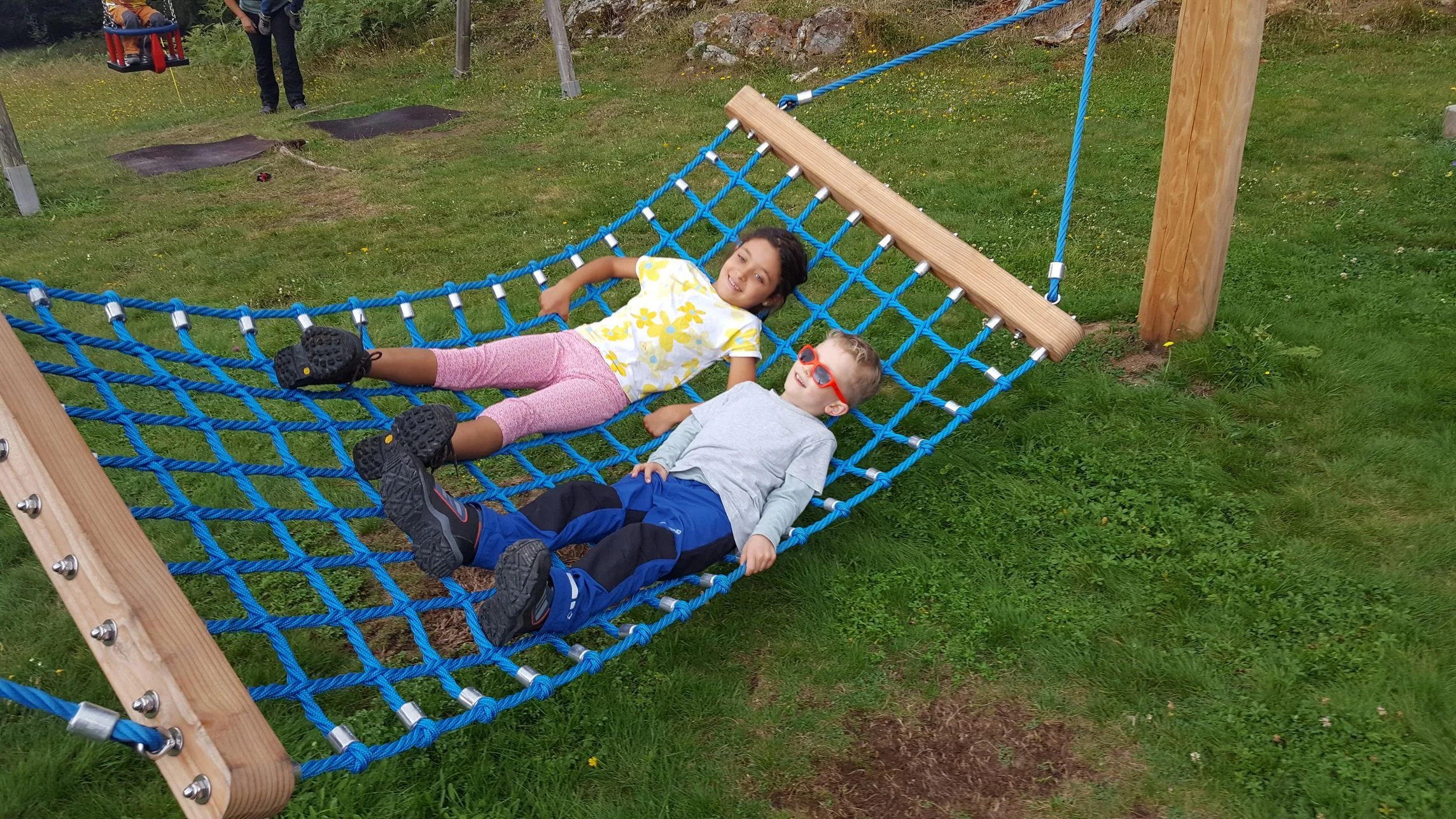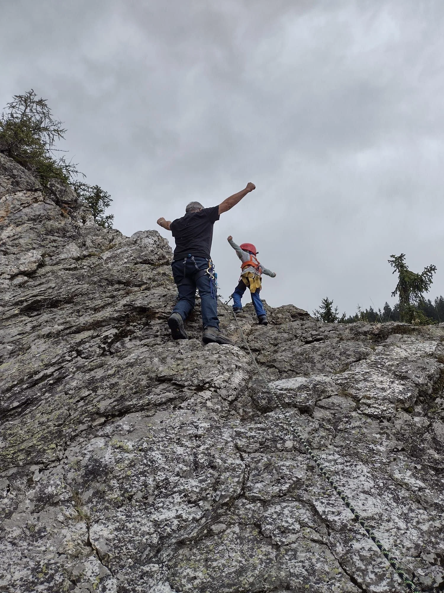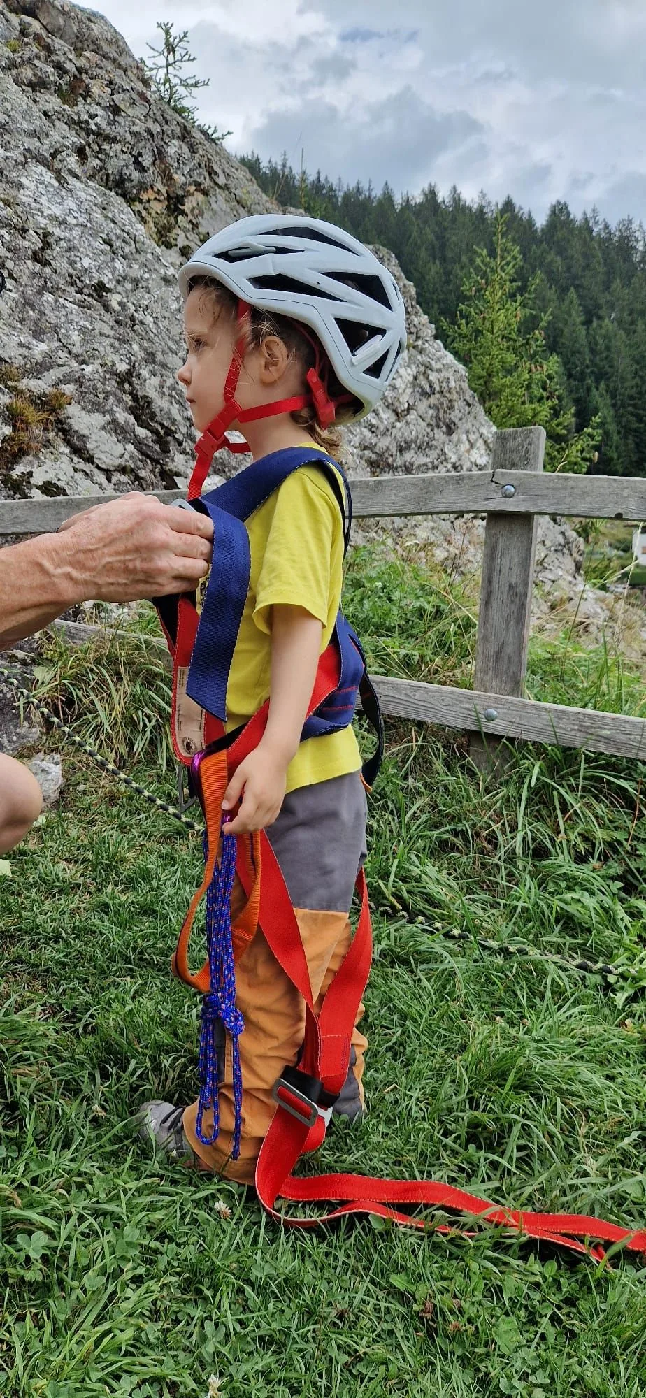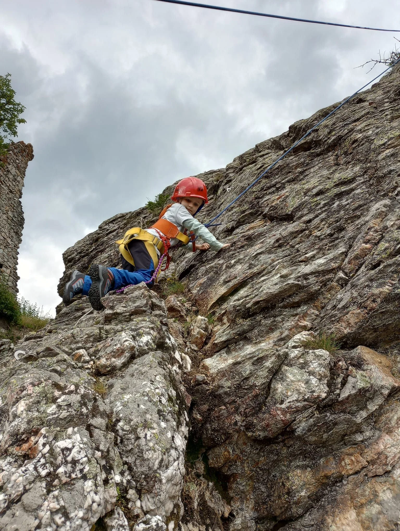 Zügig wurden die Zimmer bezogen und schon bald waren alle abmarschbereit für den Platz oberhalb des Dorfes wo die Brätlistellen sind. Denn allen knurrte der Magen. Nach so langer Fahrt mit dem Auto sehr verständlich. Noch war das Wetter uns hold. So wurden die Kletterstellen eingerichtet und schon bald kraxelten die Kids die griffigen Felsen hoch. Derweil die Erwachsenen den jungen Talenten zuschauten, oben bei den Kletterfelsen, unten bei der Brätlistelle miteinander plauderten oder sich rund um die Burgruine Friberg, bzw. um die Felsen auf der diese steht, umschauten.