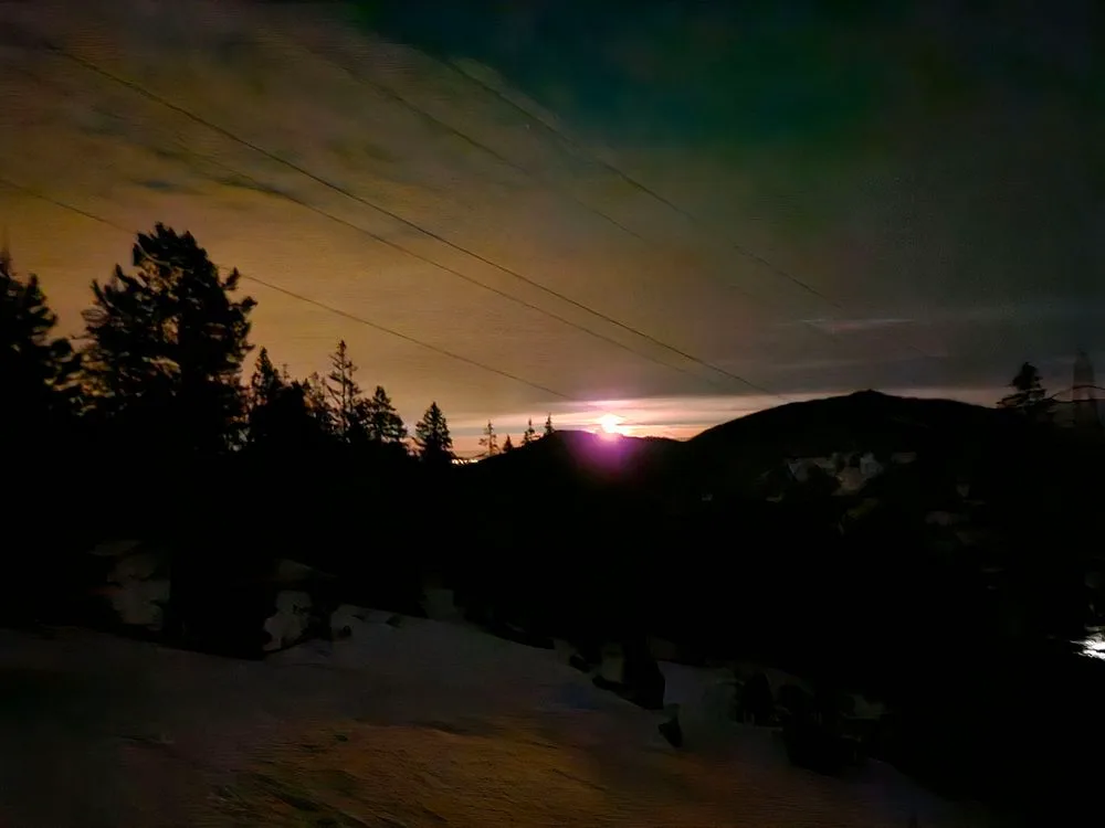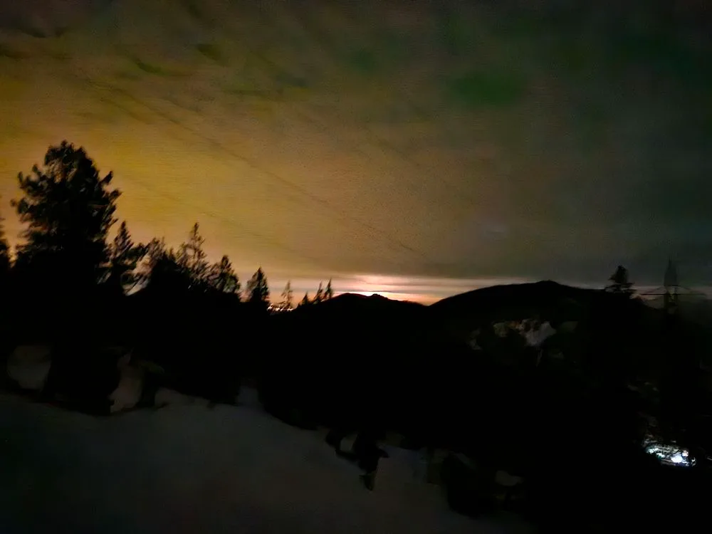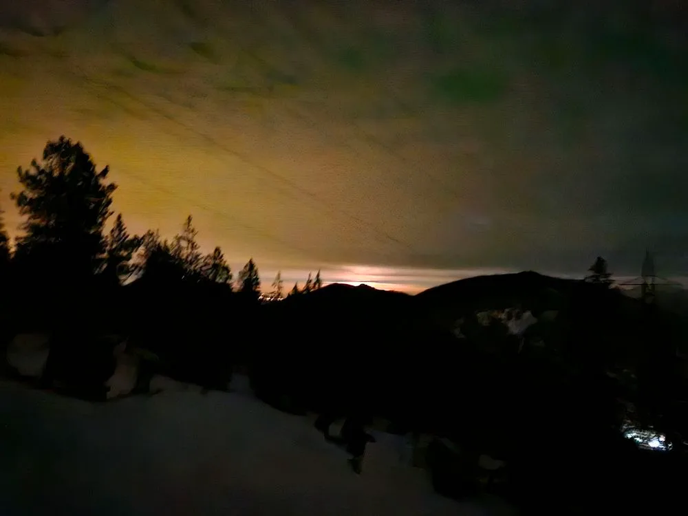 Schlussendlich kam die Erlösung und die Scheibe des Mondes erhellte die Schneelandschaft, womit auch Unebenheiten wieder zu erkennen waren.