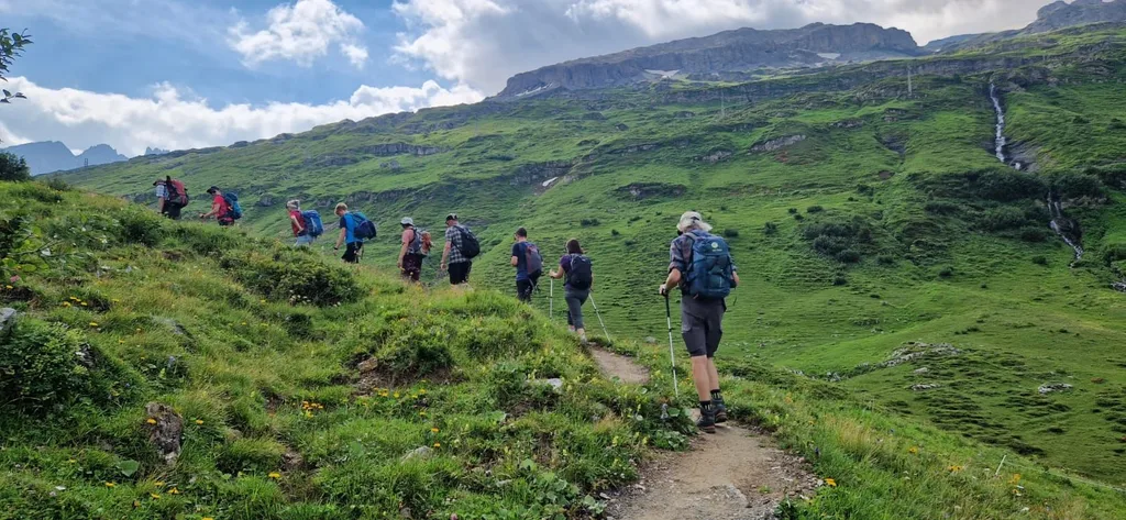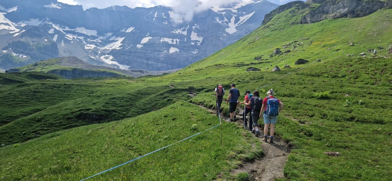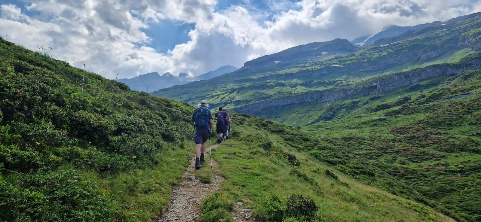 Am nächsten Morgen verlief der Aufstieg zum Balmer Grätli etwas anders als geplant. Wir gerieten in den Auftrieb einer Kuhherde und mutierten kurzerhand zu Alp-Gehilfen! Der Vorteil: man merkte fast nicht, dass wir dabei einen grossen Teil des Aufstiegs bodigten.
